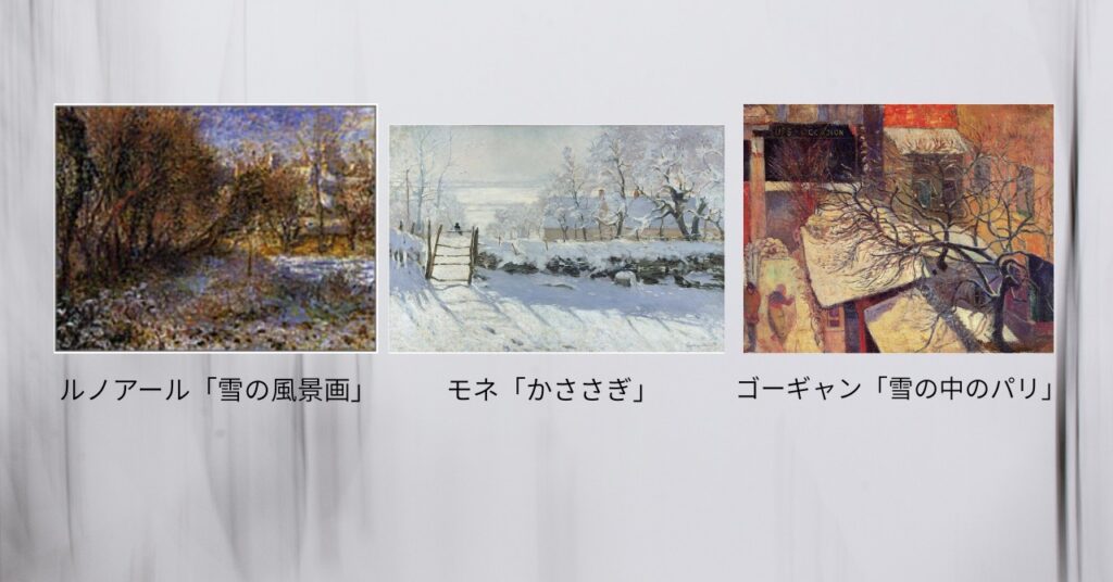 では印象派作家たちのの冬景色の違いについて見てみたいと思います。