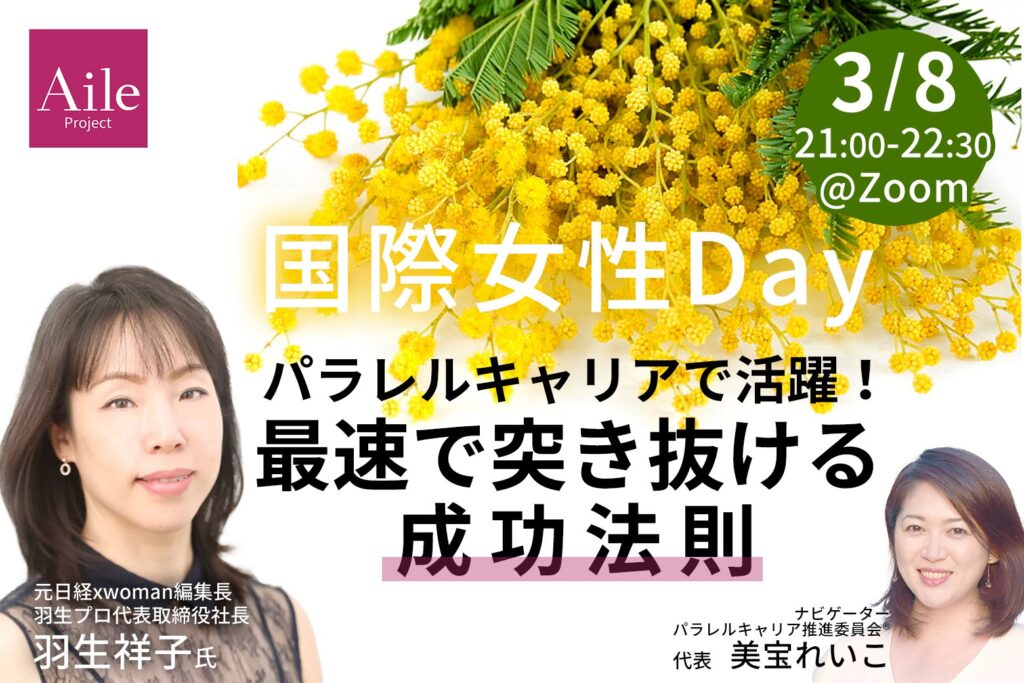 昨年100名以上の方にご参加いただき大盛況だった、エールプロジェクト主催の国際女性デーイベントを、2023年も開催します!テーマは『パラレルキャリアで活躍!最速で突き抜ける成功法則』