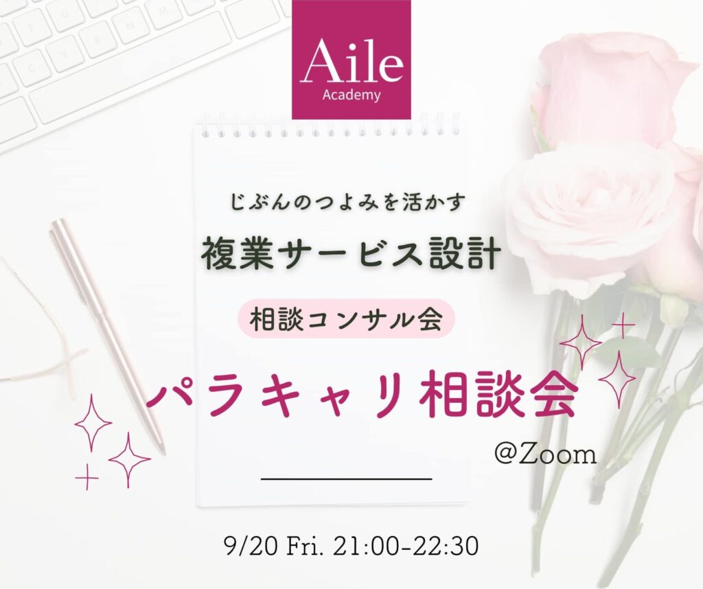 9月は20日(金)21:00~開催!毎月無料で開催している『パラレルキャリア相談会』で、Aile Academy講師に直接相談してみませんか?